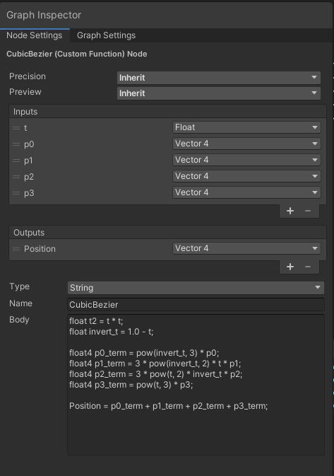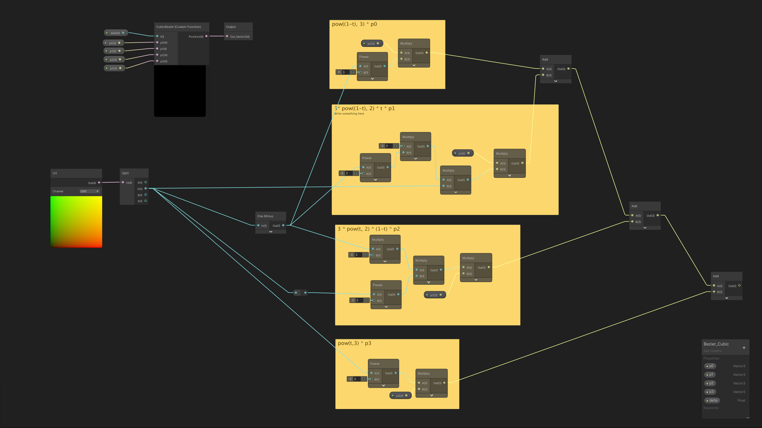 Cubic Bezier math represented as nodes (Unity Shader graph)
